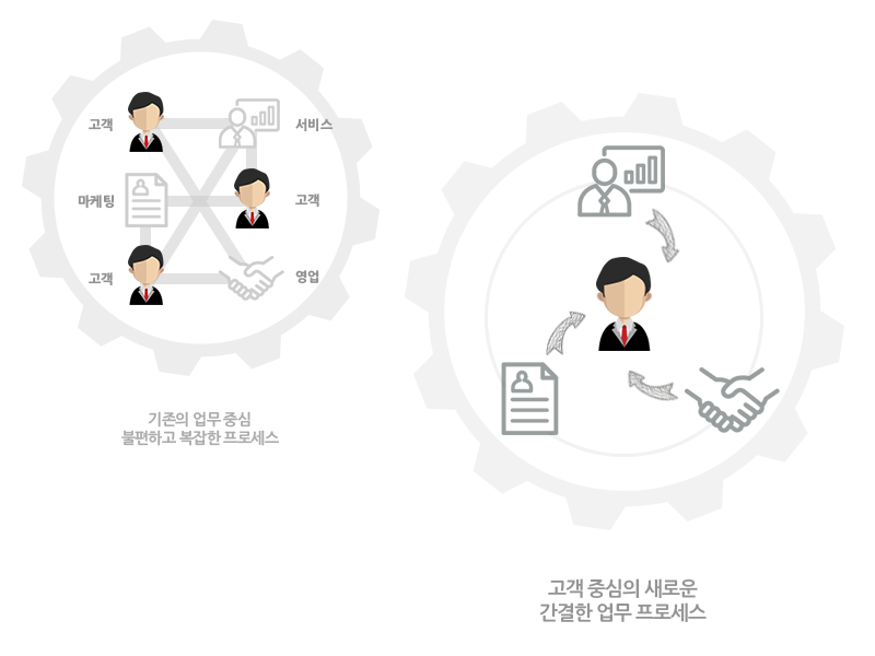 표준화된 프로세스를 제공하여 고객을보다 효율적으로 관리 하실수 있게 도와드립니다.기업은 CRM 도입을 통해 매출, 수익률, 고객만족도를 증가 시키고